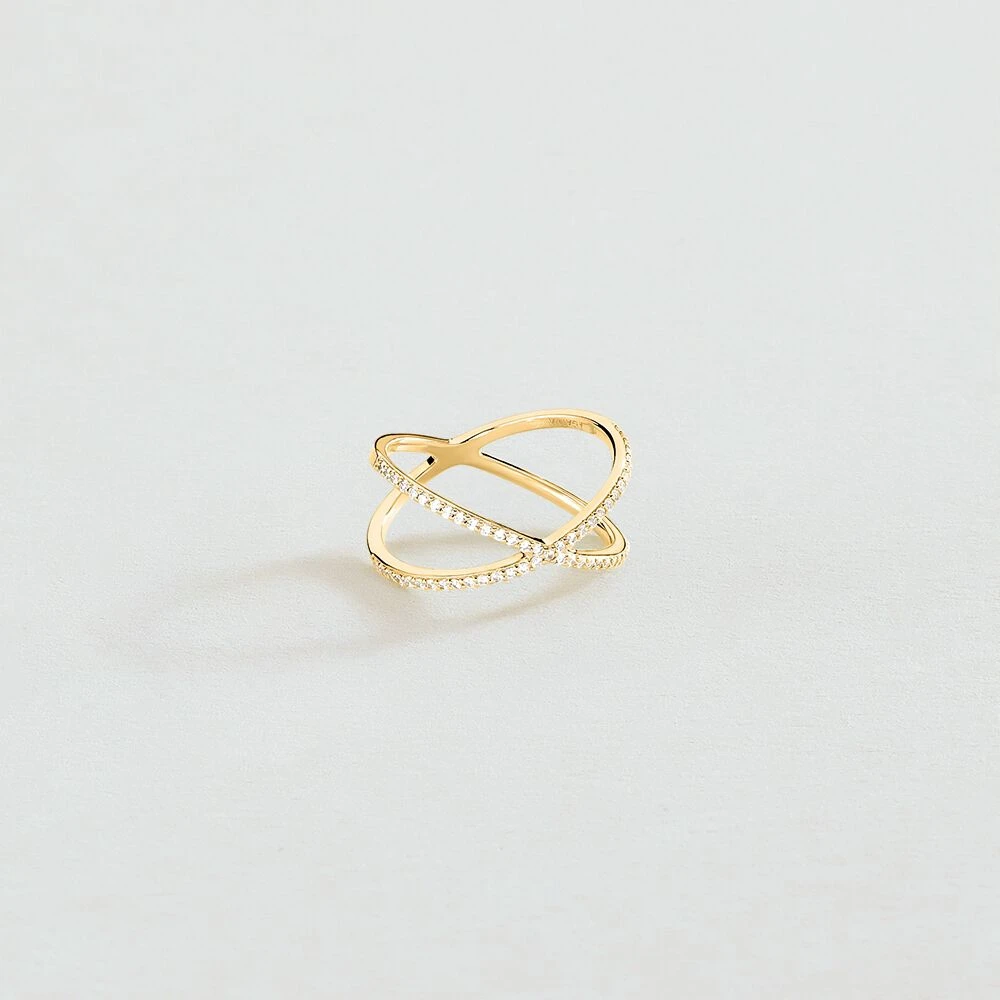Bague en argent 925/1000 doré à l’or 750/1000 en forme de croix pavée d’oxydes de zirconium..