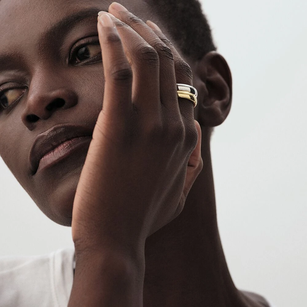 Deux joncs, en argent véritable et argent véritable doré 750/1000..