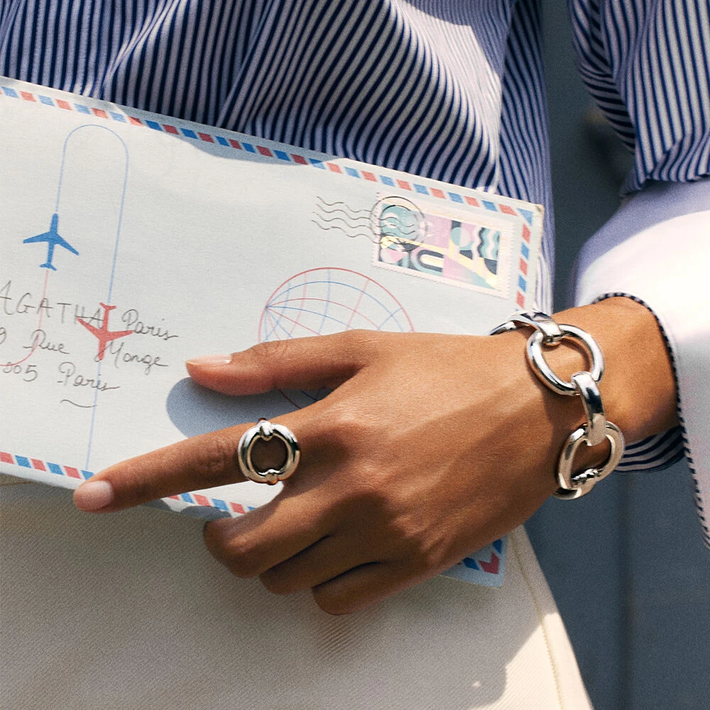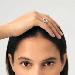 Bague large en argent véritable avec ornée d’un anneau évidé.