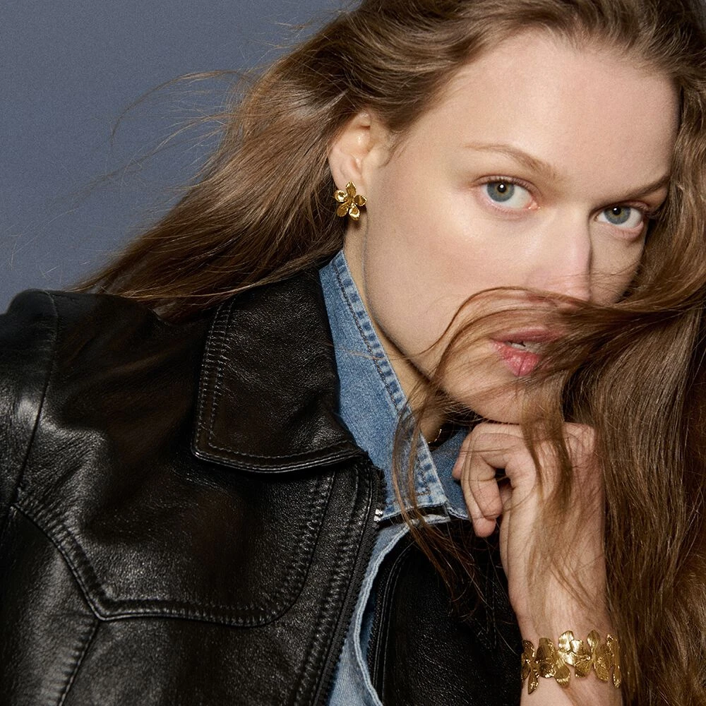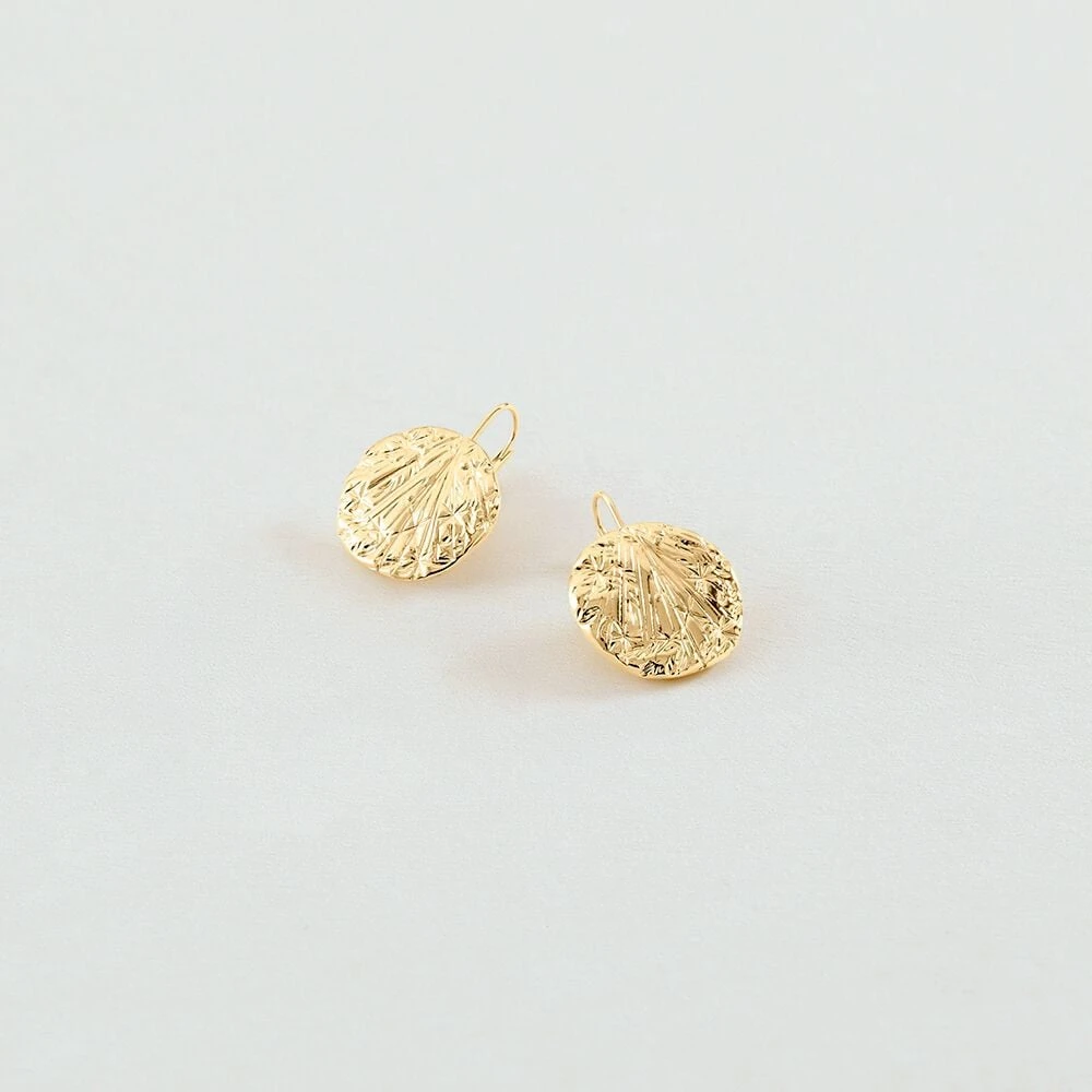 Boucles d’oreilles dormeuses, en métal doré 750/1000, médaille gravure ‘rayonnant’.