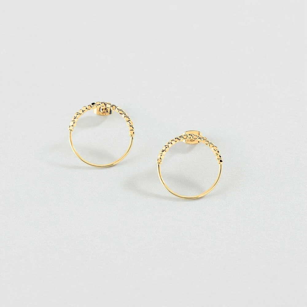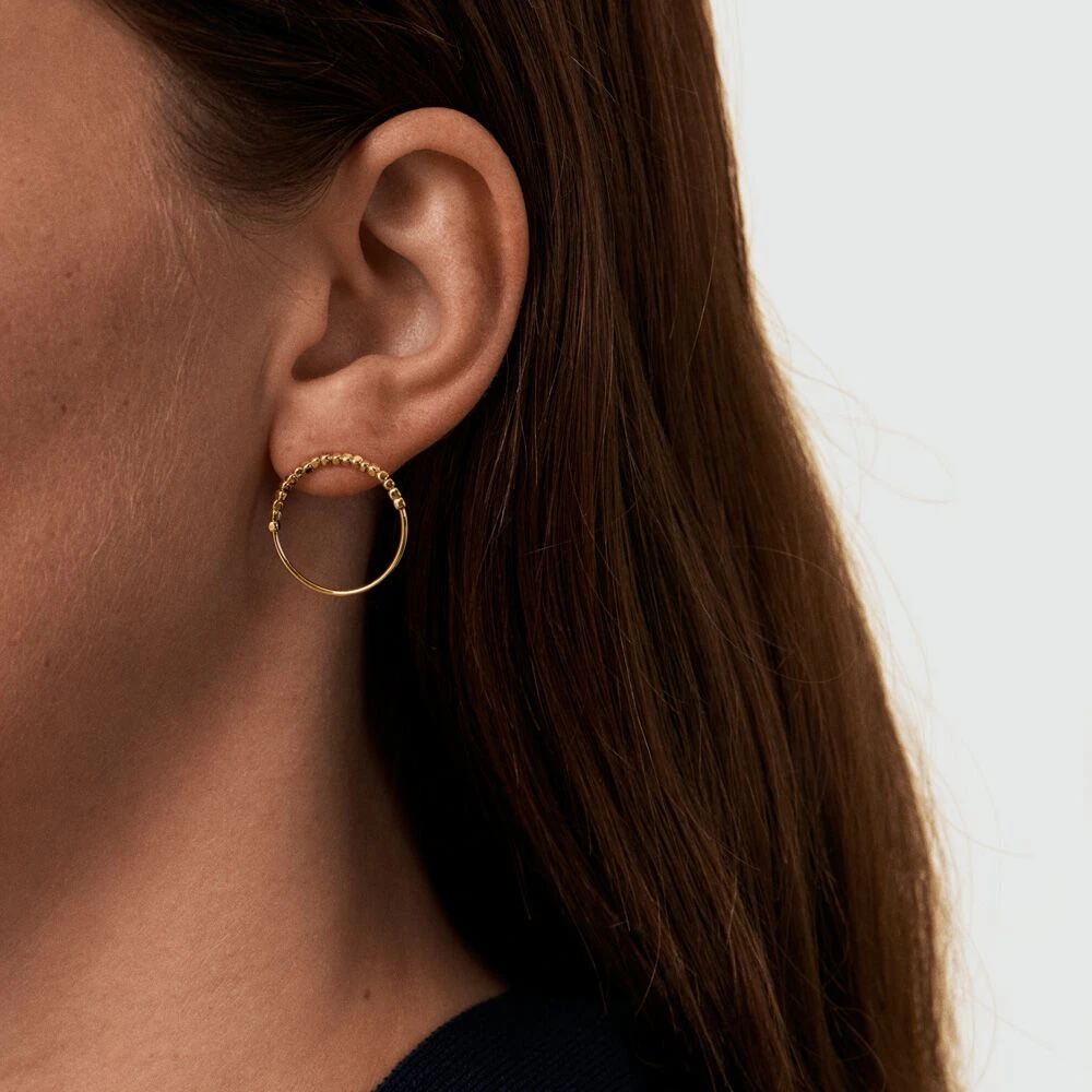 Boucles d’oreilles orbitales, en laiton doré 750/1000, anneau avec une section de perles en métal.