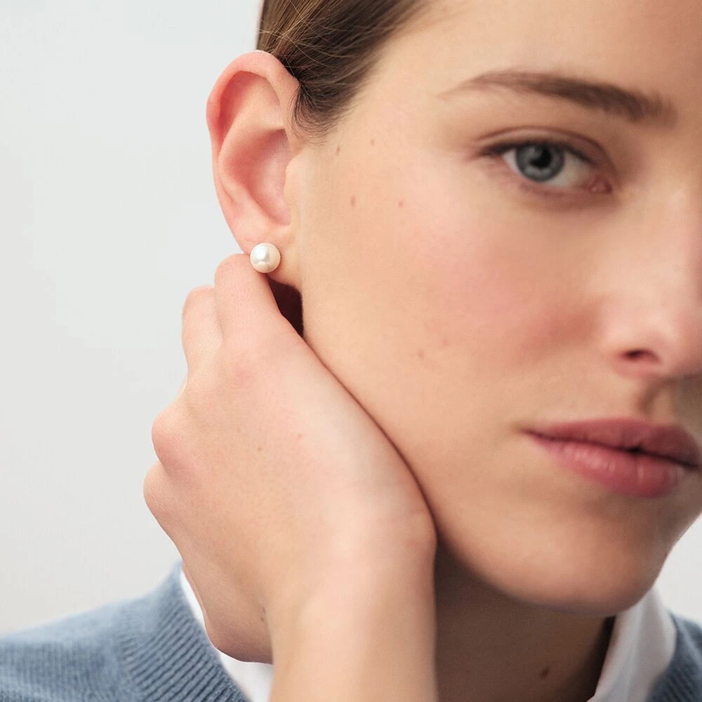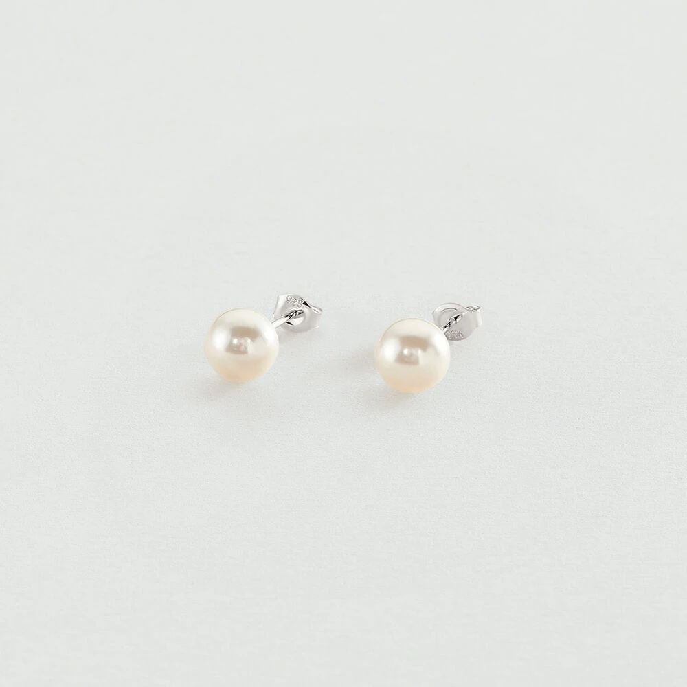 Boucles d’oreilles puces en argent véritable ornées de perles de verre de 8 mm de diamètre.
