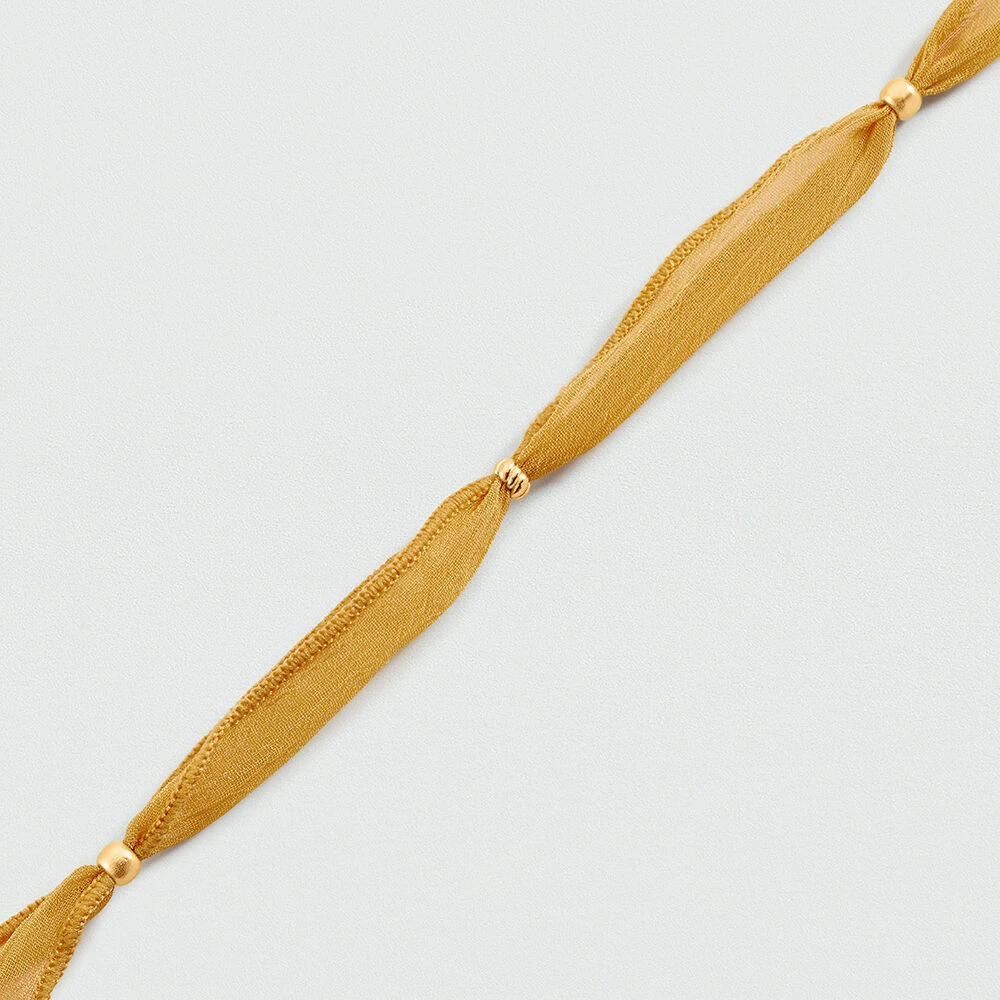 Bracelet en soie colorée avec perles dorées. Idéal à accumuler pour un look boho chic irrésistible tout l’été. Vous ne voudrez plus le quitter !.
