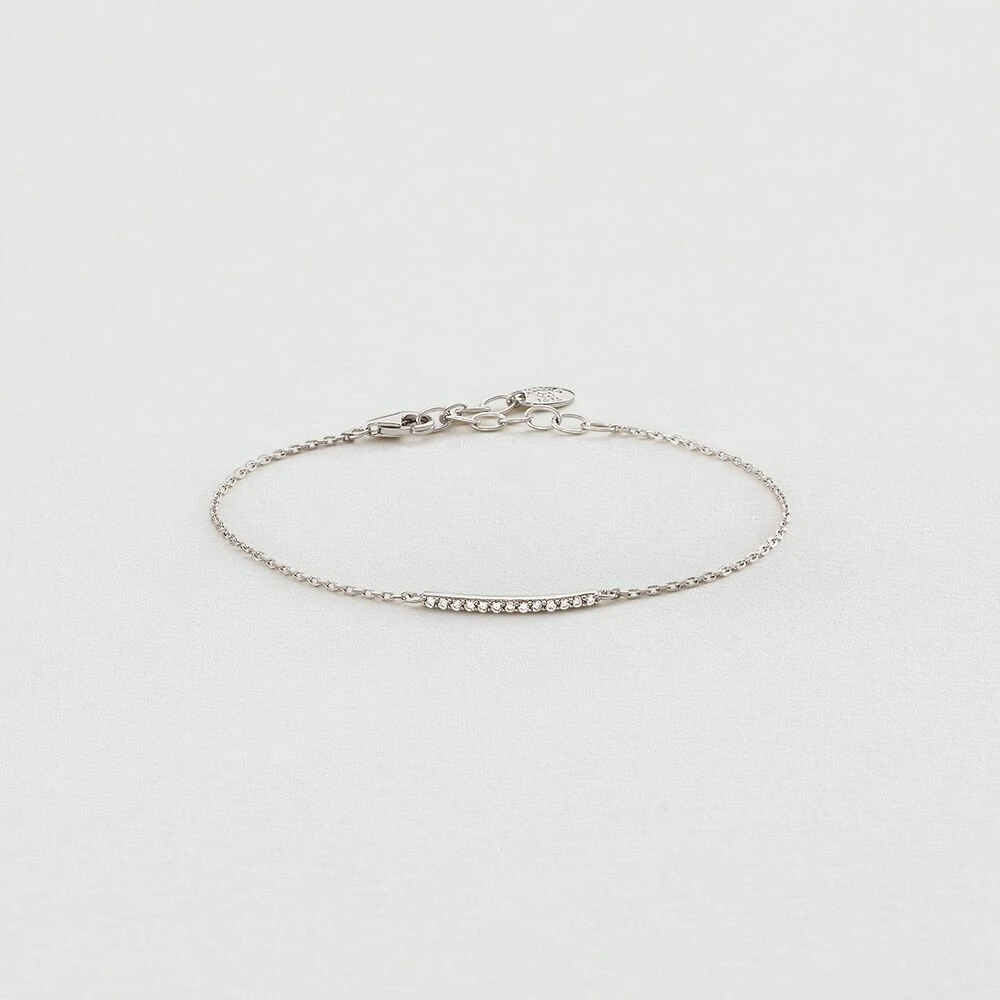 Bracelet souple en argent véritable orné d’une petite barre rigide pavée d’oxydes de zirconium.