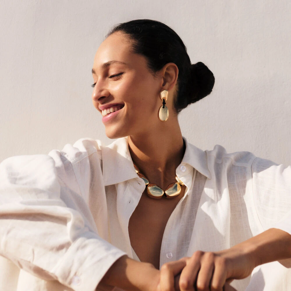 Collier court en coton noir, orné de multiples pendentifs organiques en laiton doré.Une pièce audacieuse et contemporaine, conçue pour sublimer vos tenues avec caractère et originalité.
