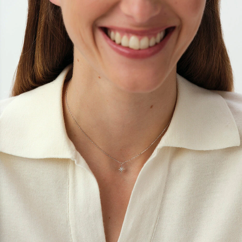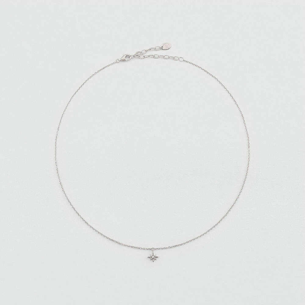 Collier en argent 925/1000 avec une étoile en pendentif sertie d’un oxyde de zirconium. . Ce bijou mesure 375mm et contient une rallonge de 50mm