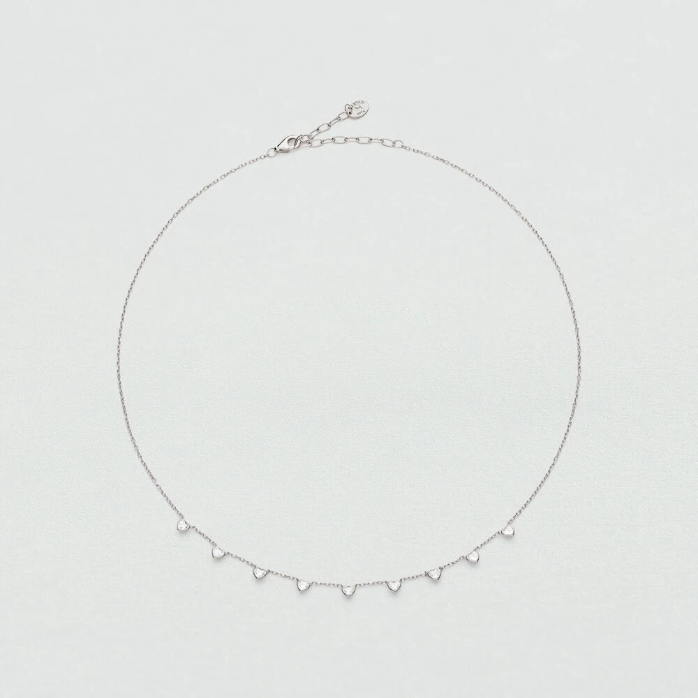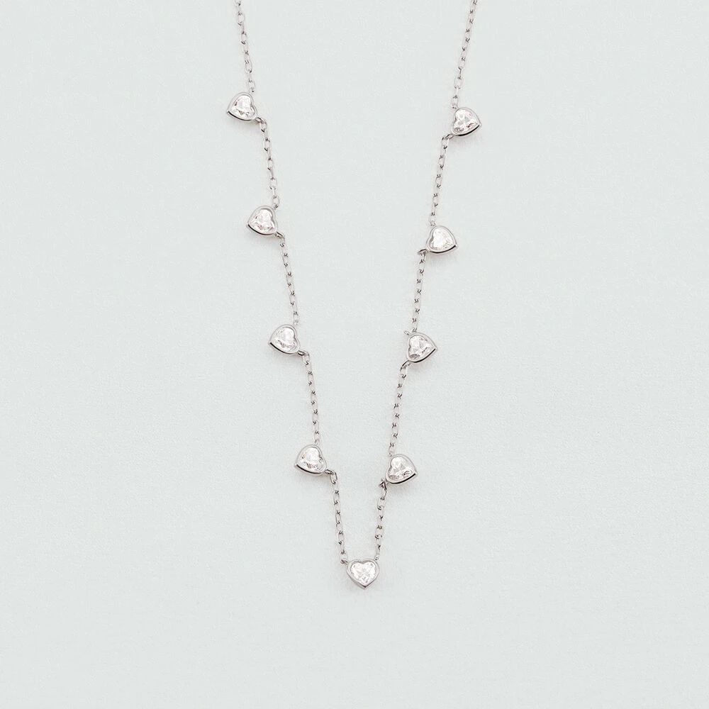 Collier en argent 925/1000 serti d’une multitude d’oxydes de zirconium en forme de cœur .