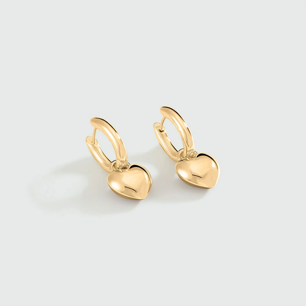 Créoles avec une pampille en forme de cœur en laiton doré. .