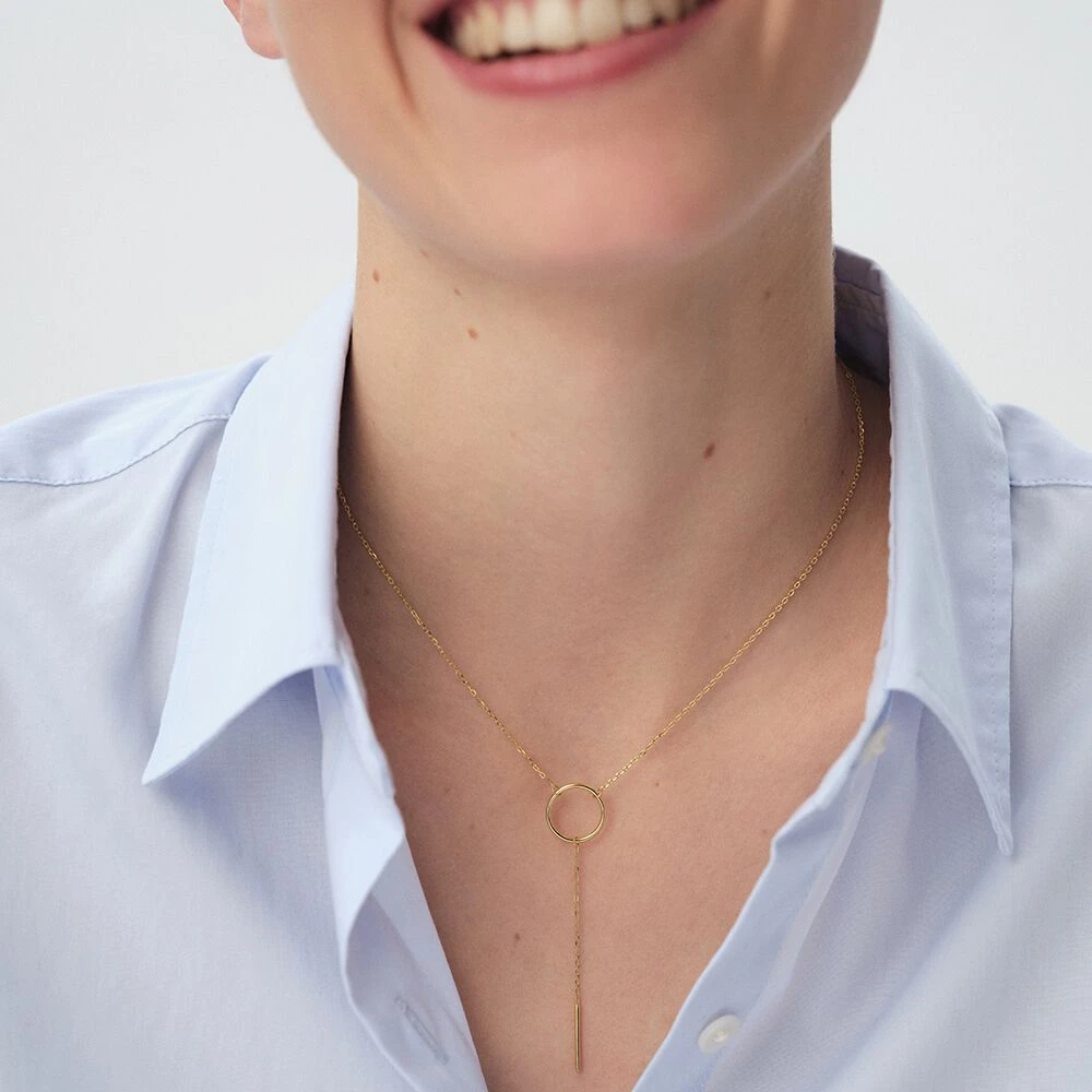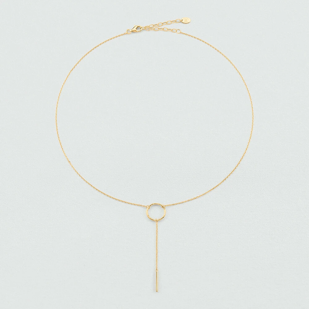 Collier Y en argent 925/1000 doré à l’or 750/1000 avec un fin fil pendant. .